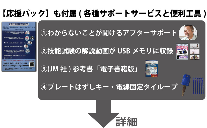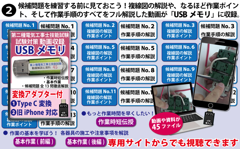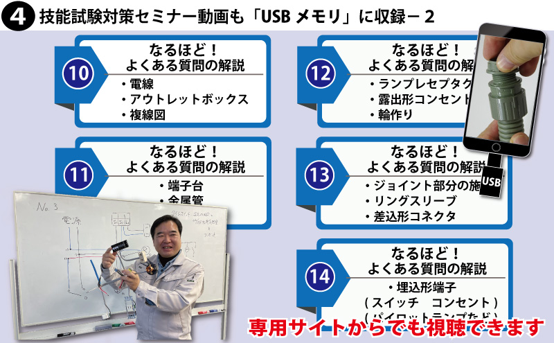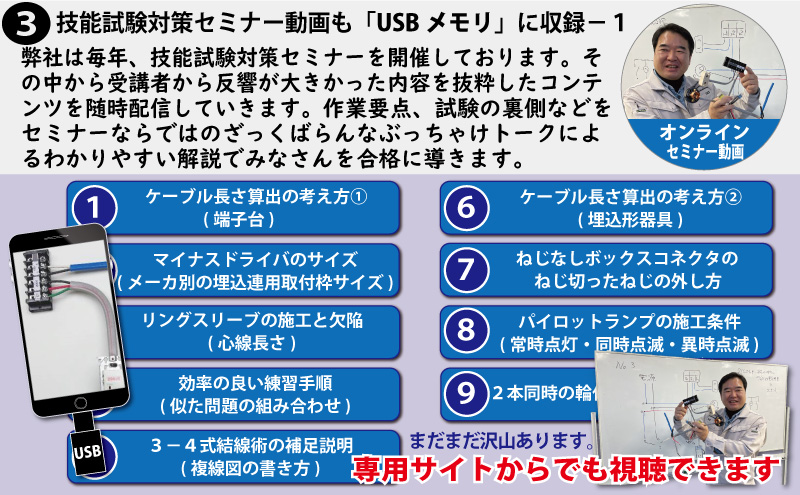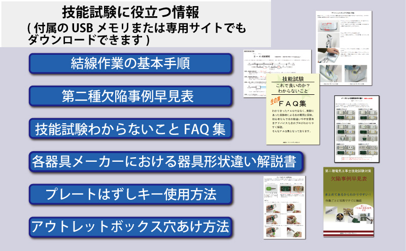 責任者の遠藤です。技能試験を受験するにあたって大変なのが練習する上での材料調達です。当社では電気技術者試験センターより公表されている電気工事士技能試験候補問題の練習ができるように電線から器具、工具、対策解説書にいたるまですべて調達できます。