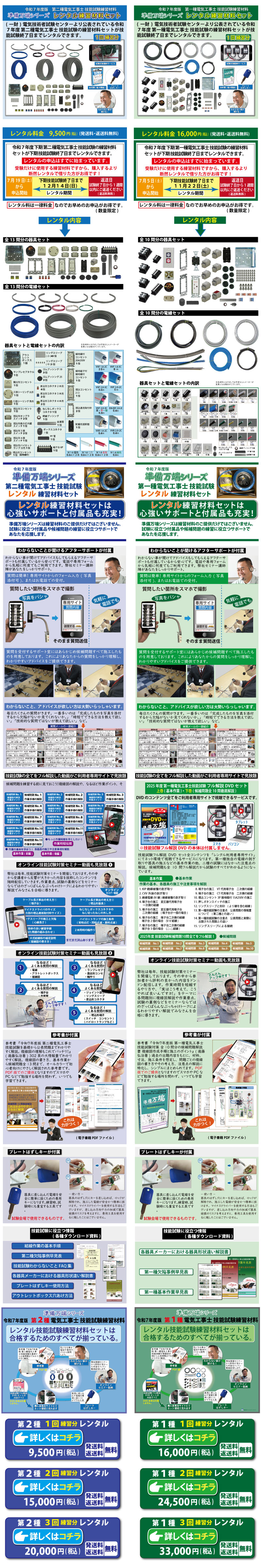 責任者の遠藤です。技能試験を受験するにあたって大変なのが練習する上での材料調達です。当社では電気技術者試験センターより公表されている電気工事士技能試験候補問題の練習ができるように電線から器具、工具、対策解説書にいたるまですべて調達できます。
